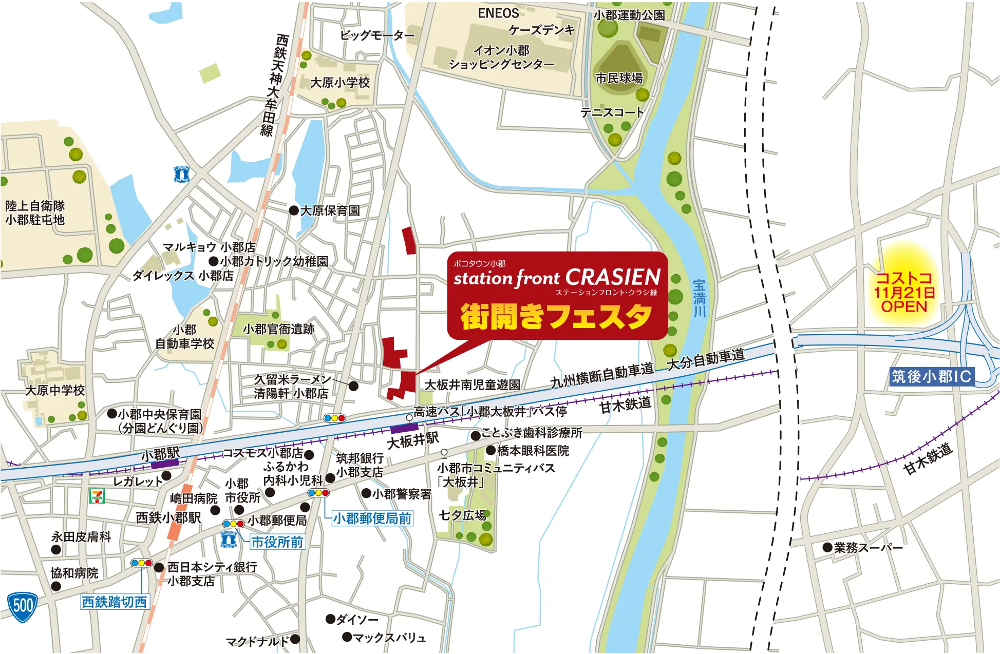 | 交通 | 甘木鉄道「大板井」駅まで徒歩4分~5分:約280m〜約390m(Ⅰ期)・徒歩7分~9分:約600m〜約720m(Ⅱ期) |